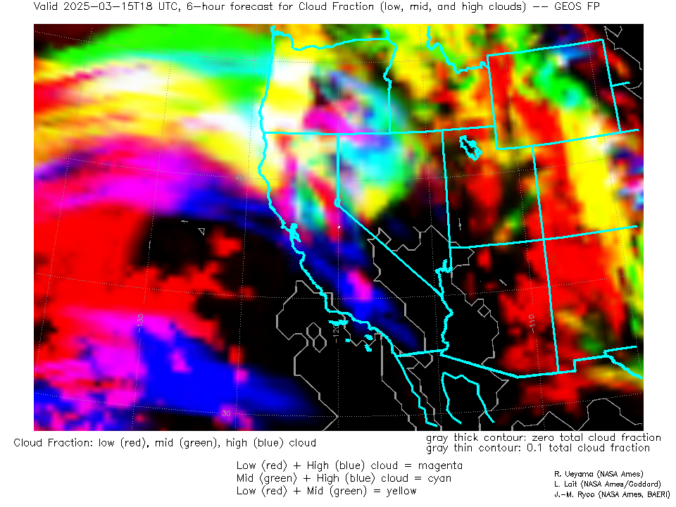 GEOS Forecast Low-, Mid- and High-level Cloud Fraction