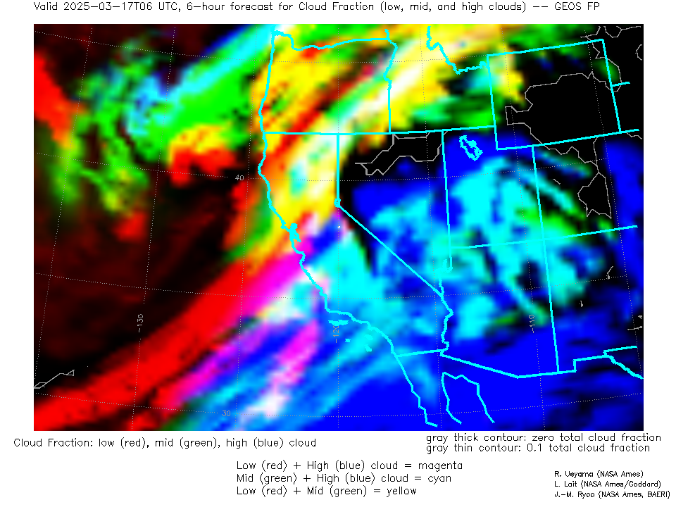 GEOS Forecast Low-, Mid- and High-level Cloud Fraction