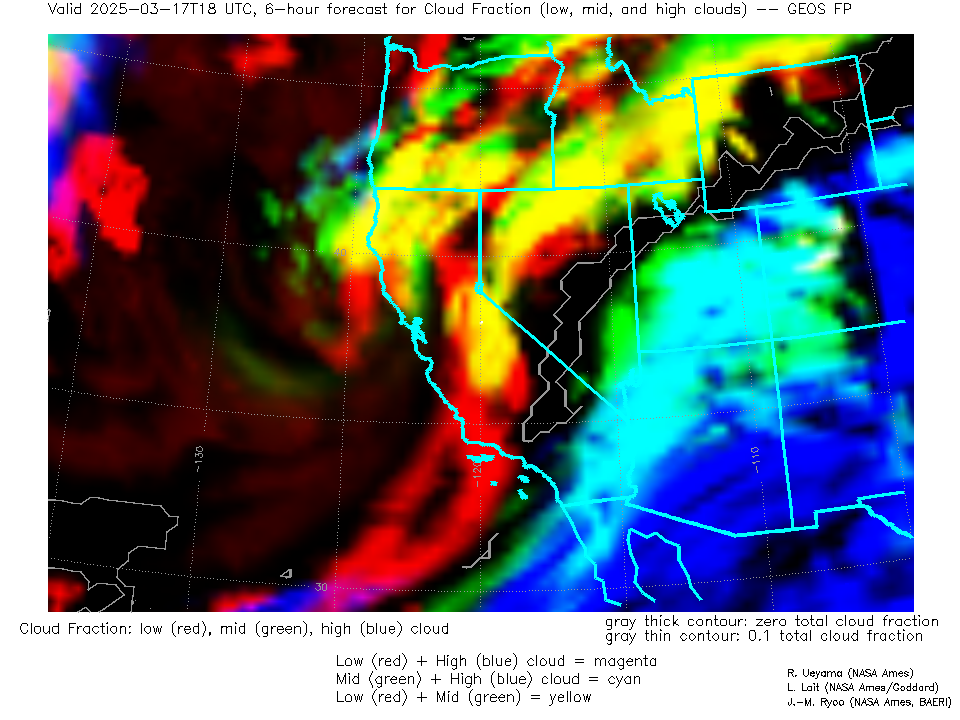 GEOS Forecast Low-, Mid- and High-level Cloud Fraction