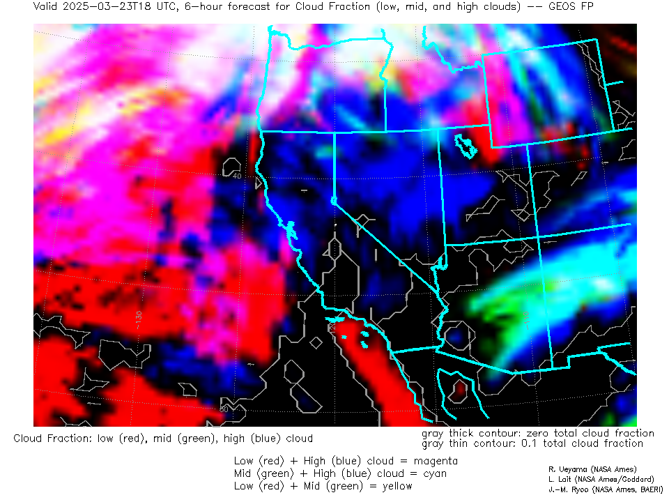 GEOS Forecast Low-, Mid- and High-level Cloud Fraction