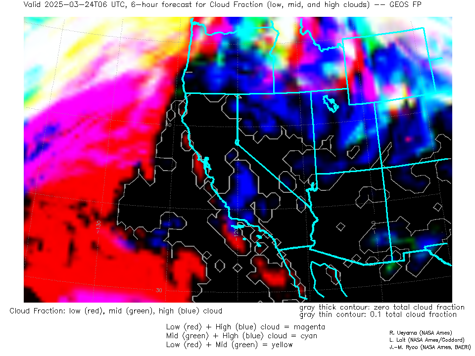 GEOS Forecast Low-, Mid- and High-level Cloud Fraction