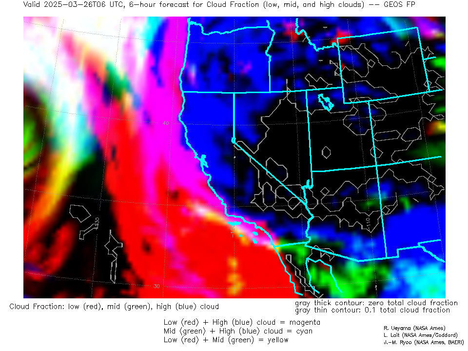 GEOS Forecast Low-, Mid- and High-level Cloud Fraction