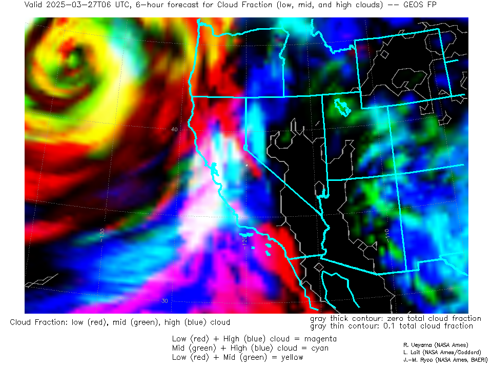 GEOS Forecast Low-, Mid- and High-level Cloud Fraction