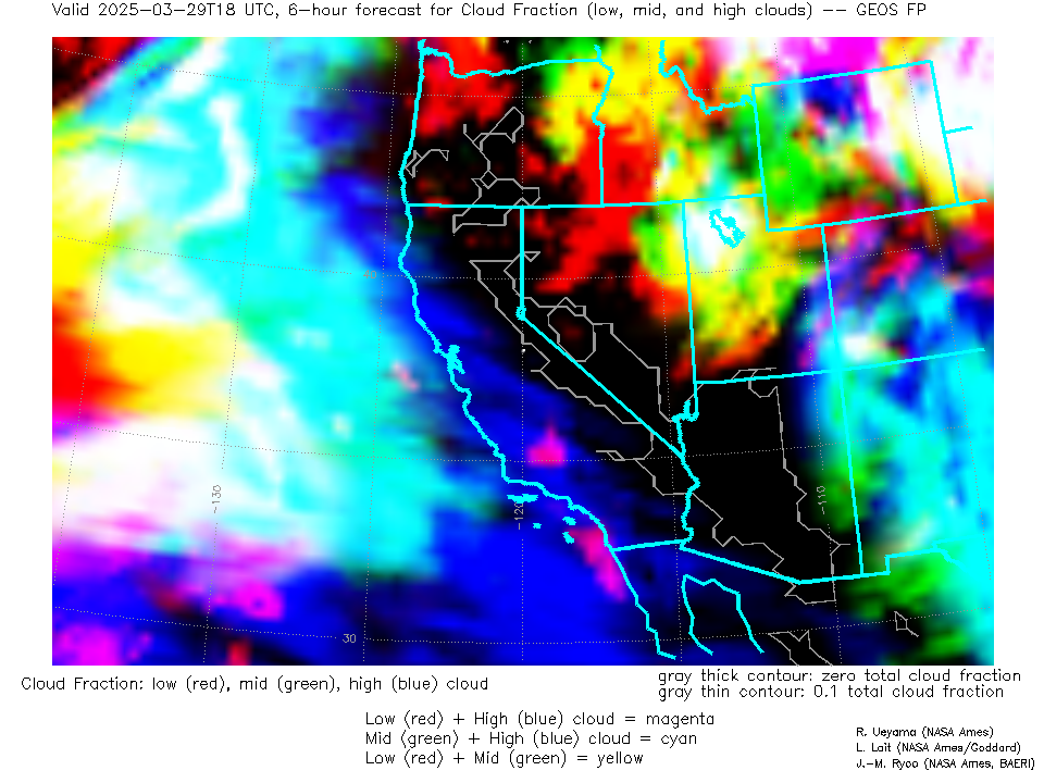 GEOS Forecast Low-, Mid- and High-level Cloud Fraction