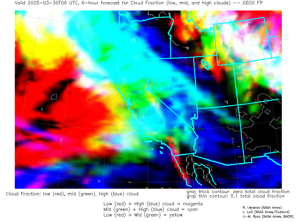 GEOS Forecast Low-, Mid- and High-level Cloud Fraction