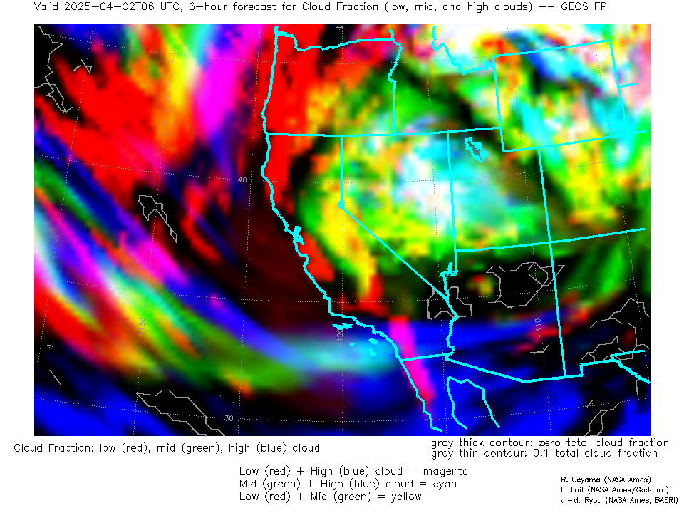 GEOS Forecast Low-, Mid- and High-level Cloud Fraction