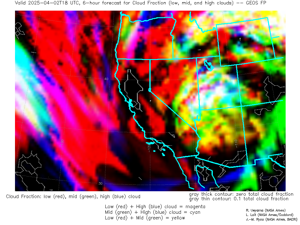 GEOS Forecast Low-, Mid- and High-level Cloud Fraction