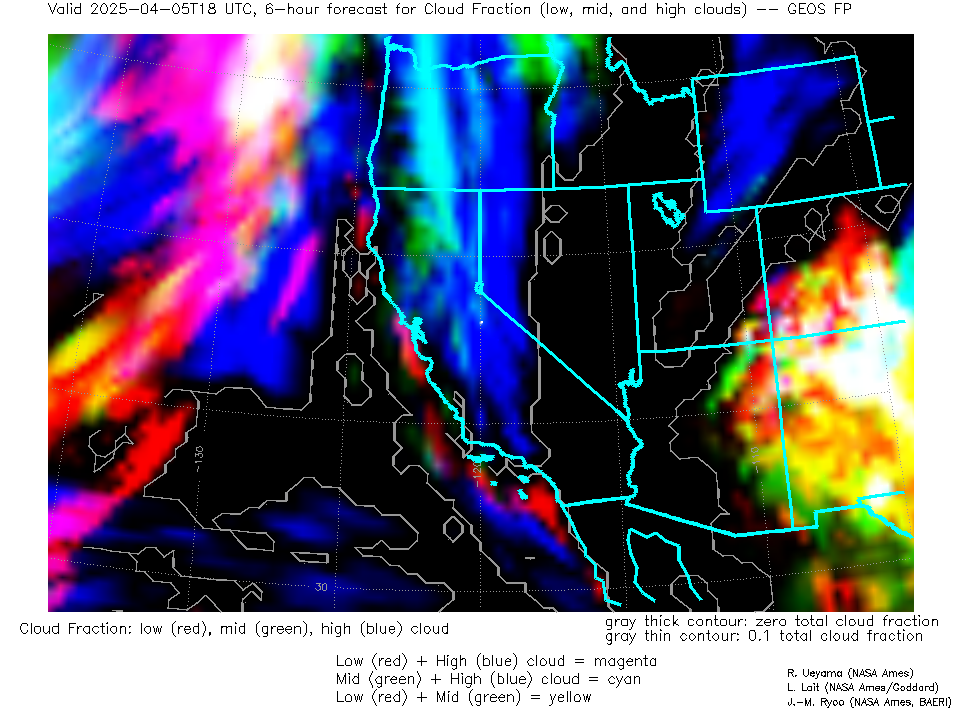 GEOS Forecast Low-, Mid- and High-level Cloud Fraction