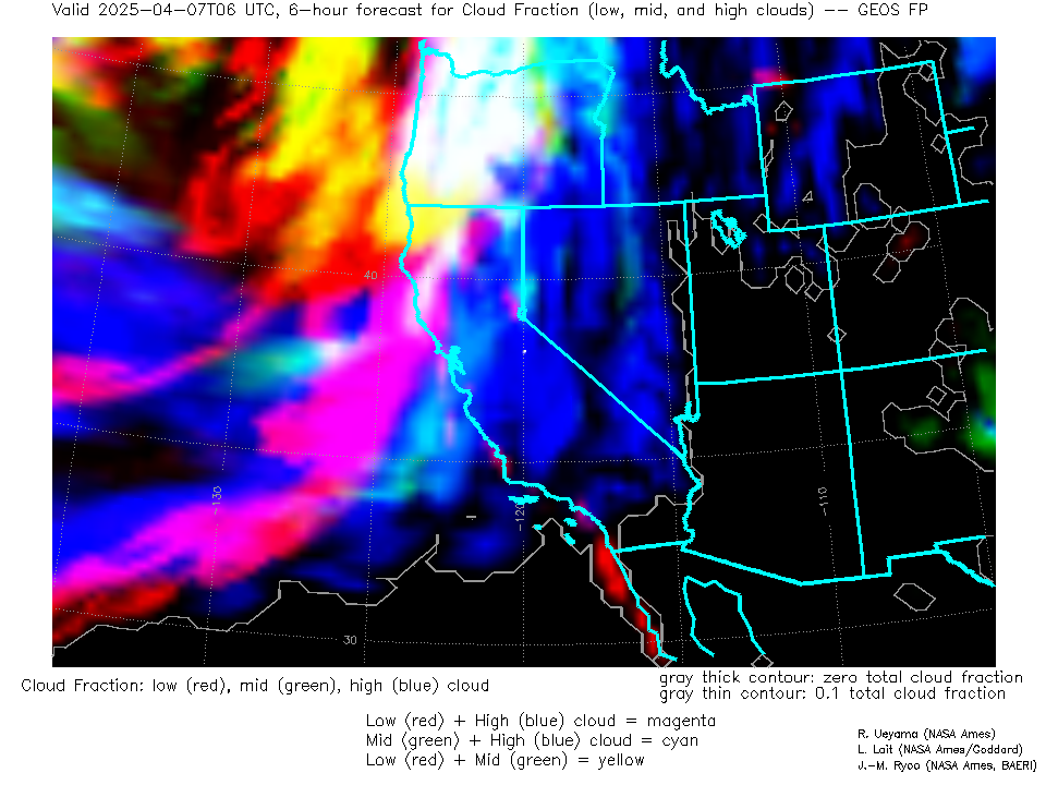 GEOS Forecast Low-, Mid- and High-level Cloud Fraction