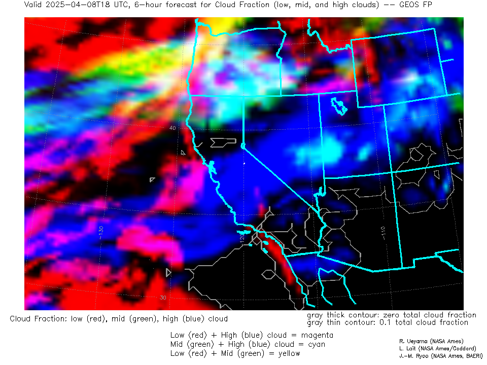 GEOS Forecast Low-, Mid- and High-level Cloud Fraction
