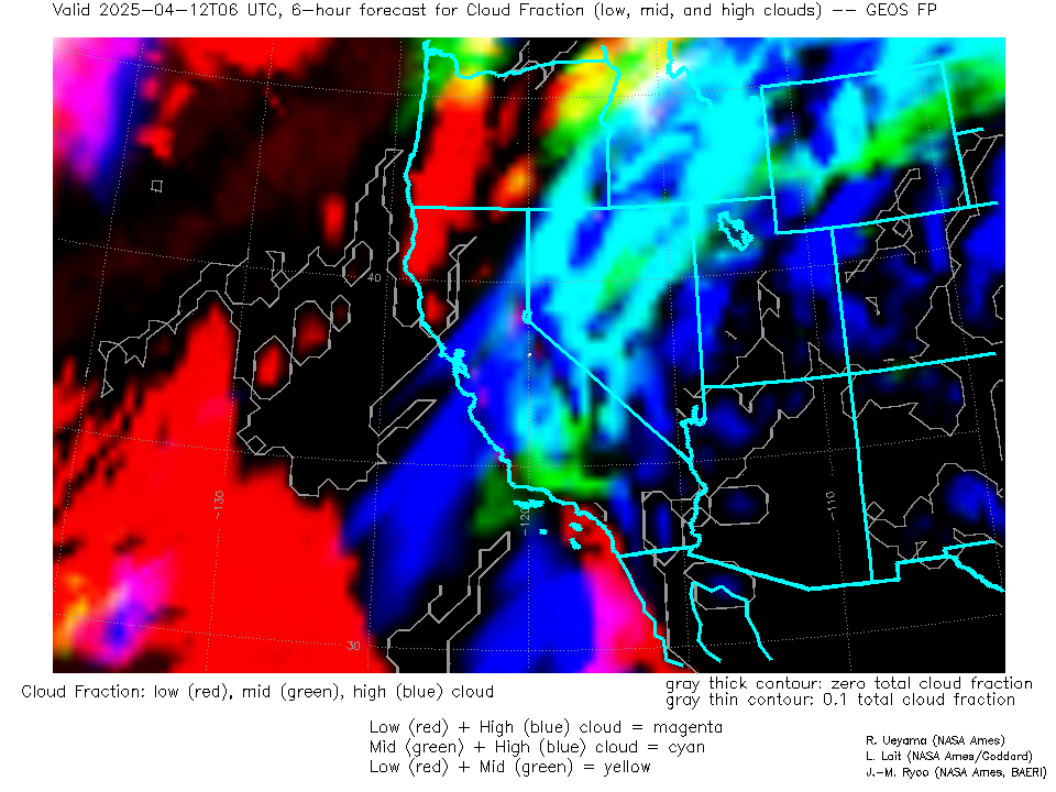 GEOS Forecast Low-, Mid- and High-level Cloud Fraction