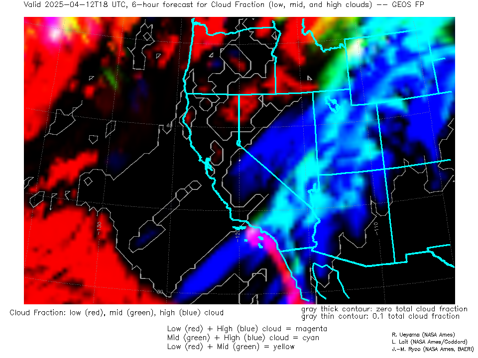 GEOS Forecast Low-, Mid- and High-level Cloud Fraction
