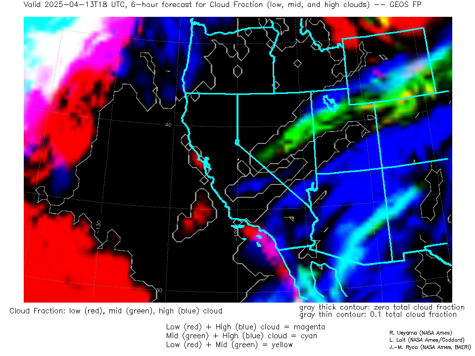 GEOS Forecast Low-, Mid- and High-level Cloud Fraction