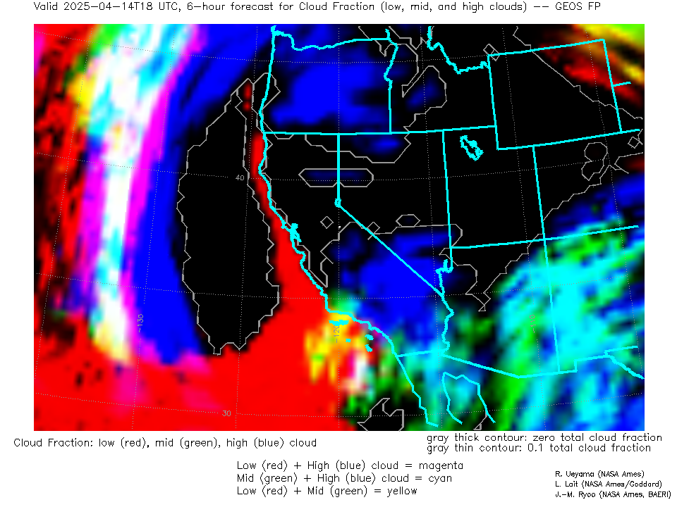 GEOS Forecast Low-, Mid- and High-level Cloud Fraction