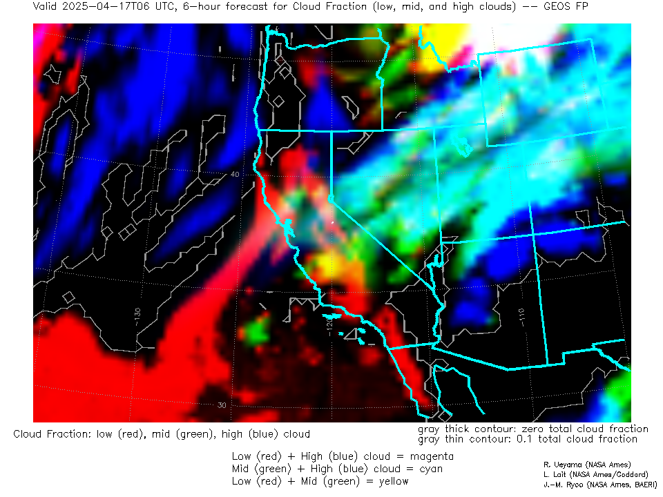 GEOS Forecast Low-, Mid- and High-level Cloud Fraction