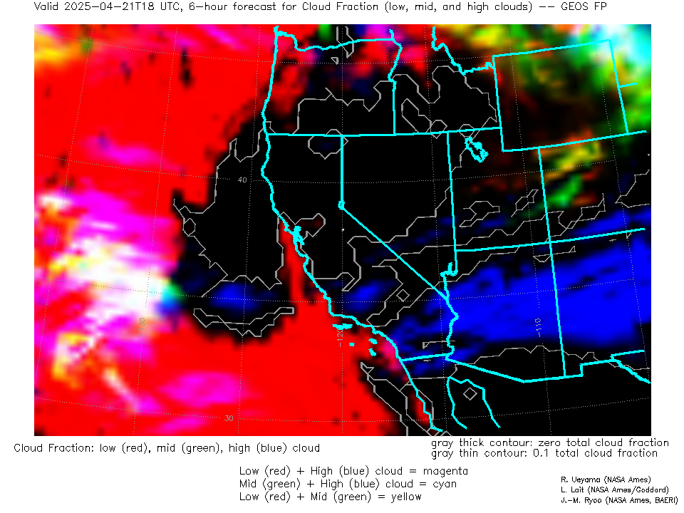 GEOS Forecast Low-, Mid- and High-level Cloud Fraction