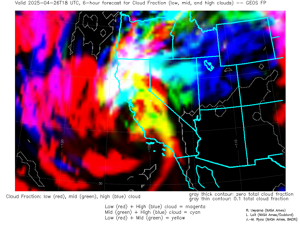 GEOS Forecast Low-, Mid- and High-level Cloud Fraction