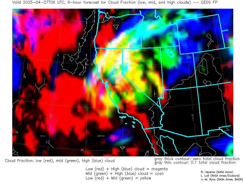 GEOS Forecast Low-, Mid- and High-level Cloud Fraction