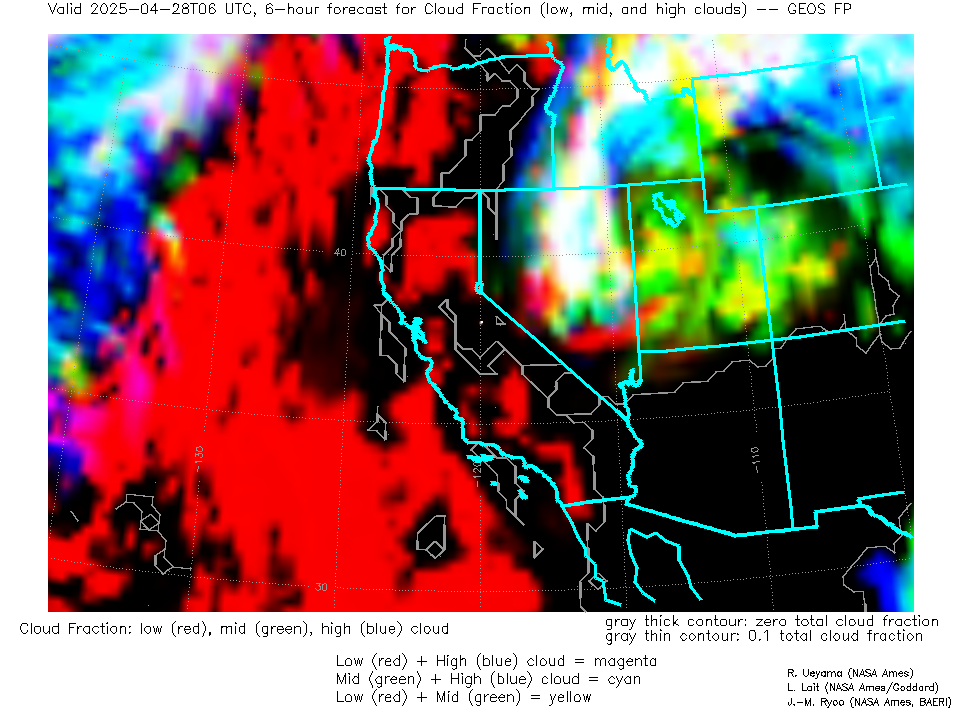 GEOS Forecast Low-, Mid- and High-level Cloud Fraction