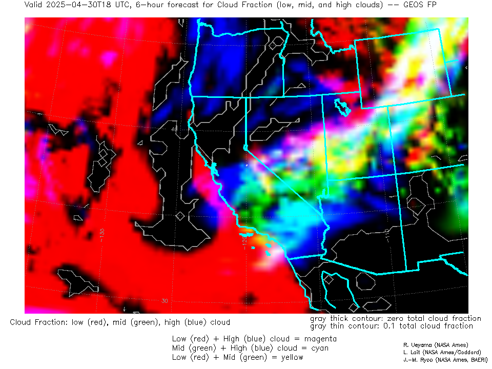 GEOS Forecast Low-, Mid- and High-level Cloud Fraction