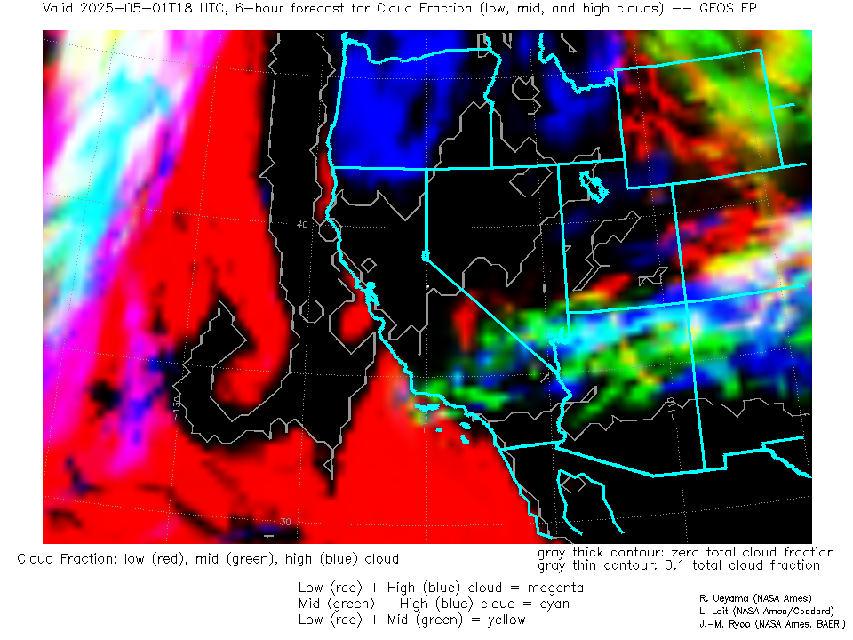 GEOS Forecast Low-, Mid- and High-level Cloud Fraction