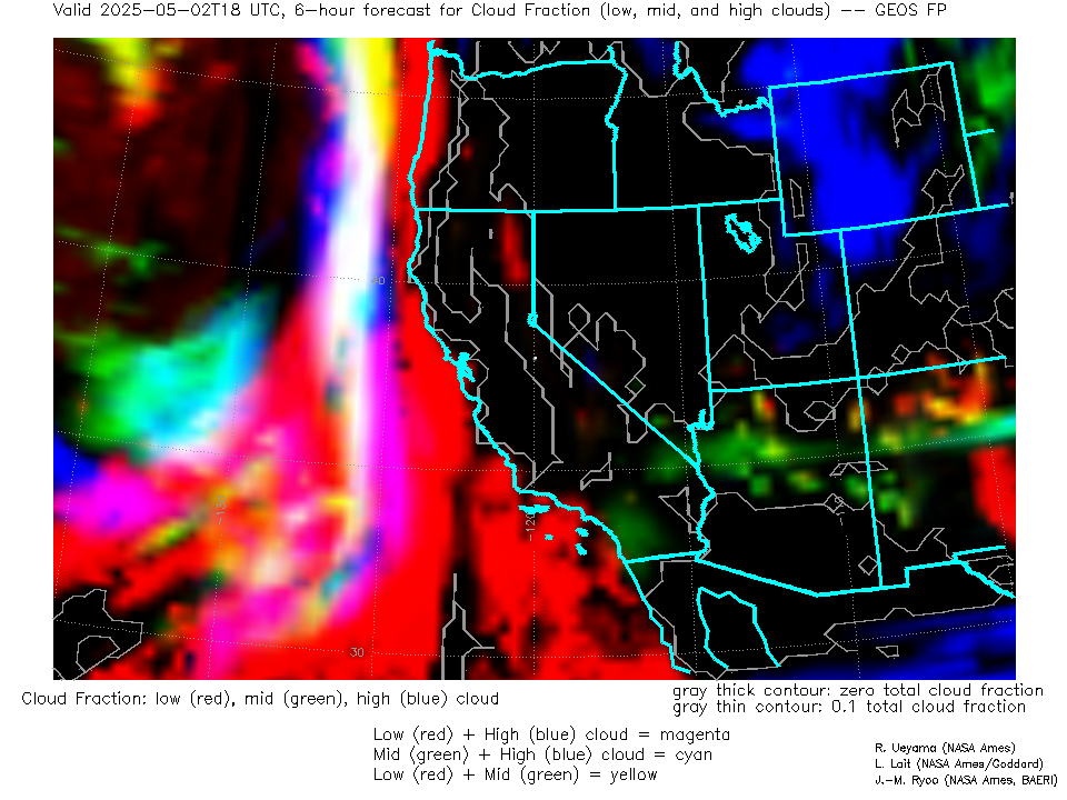 GEOS Forecast Low-, Mid- and High-level Cloud Fraction