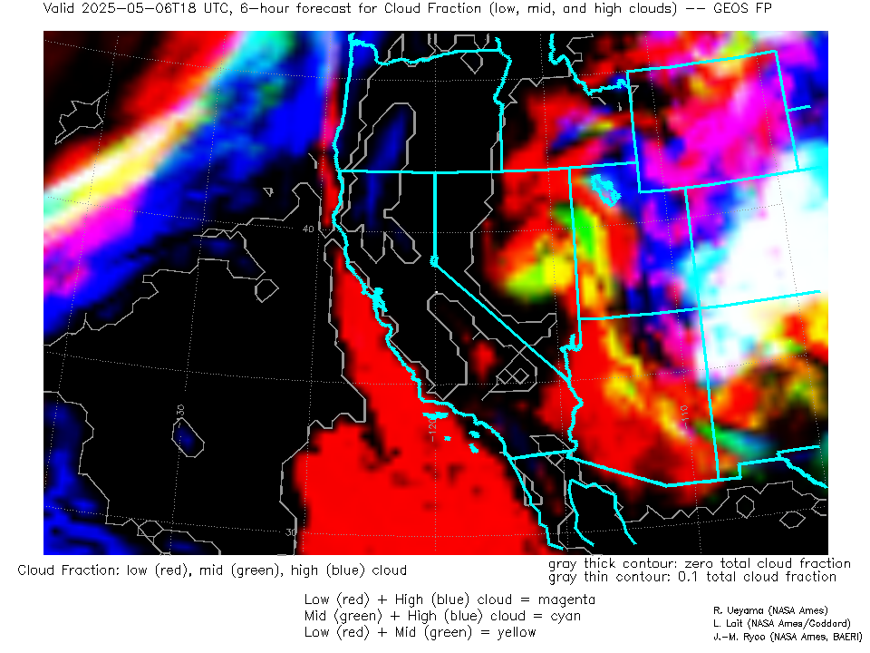 GEOS Forecast Low-, Mid- and High-level Cloud Fraction
