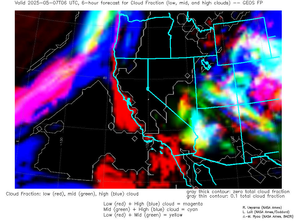 GEOS Forecast Low-, Mid- and High-level Cloud Fraction