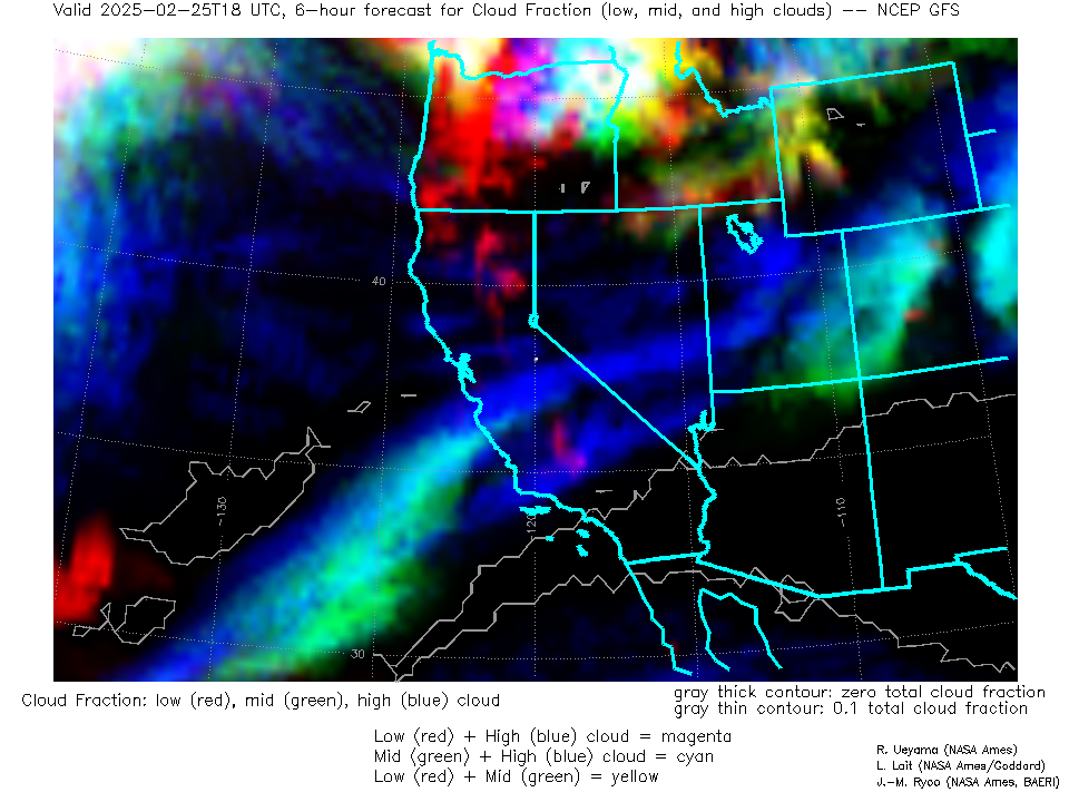 NCEP GFS Forecast Low-, Mid- and High-level Cloud Fraction