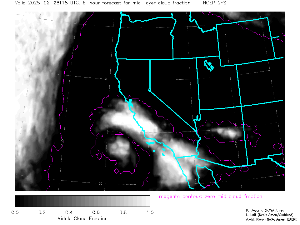 NCEP GFS Forecast Mid-level Cloud Fraction