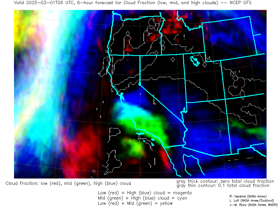 NCEP GFS Forecast Low-, Mid- and High-level Cloud Fraction