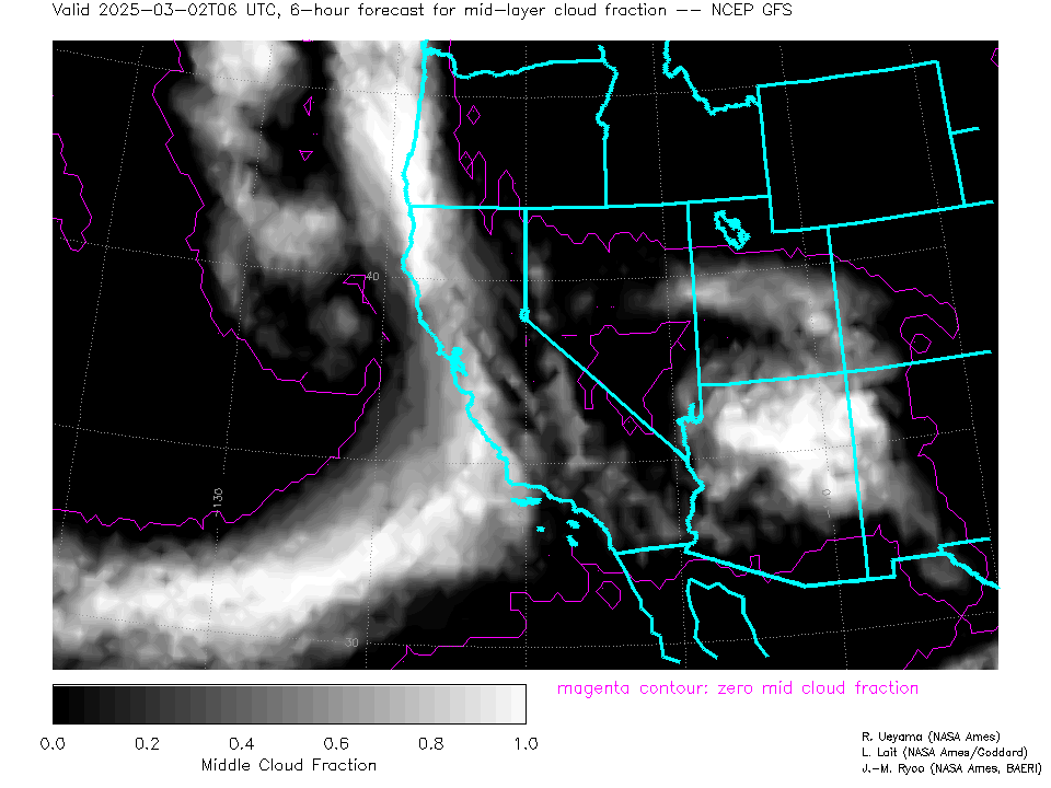NCEP GFS Forecast Mid-level Cloud Fraction