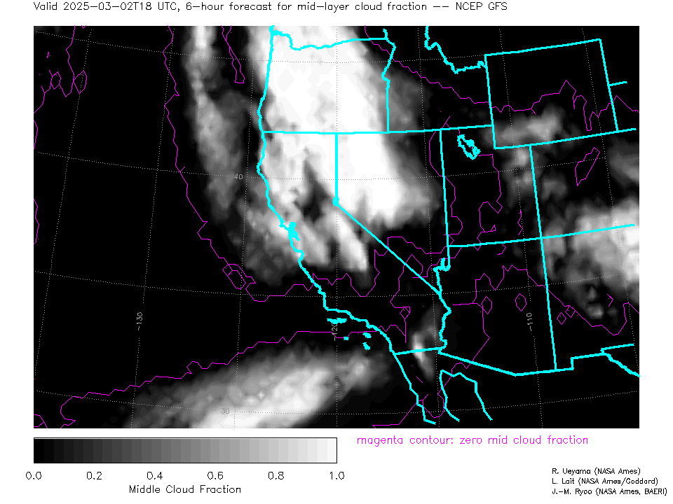 NCEP GFS Forecast Mid-level Cloud Fraction