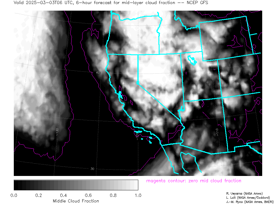NCEP GFS Forecast Mid-level Cloud Fraction