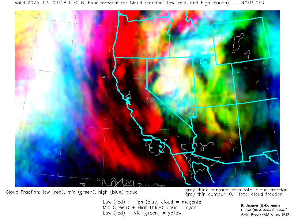NCEP GFS Forecast Low-, Mid- and High-level Cloud Fraction