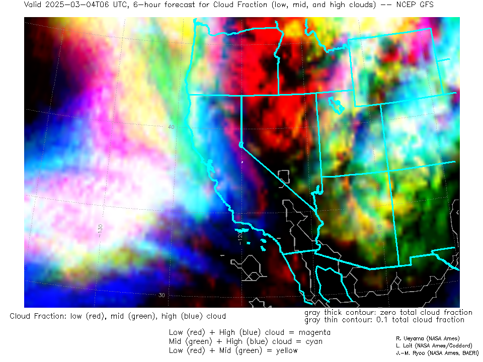 NCEP GFS Forecast Low-, Mid- and High-level Cloud Fraction