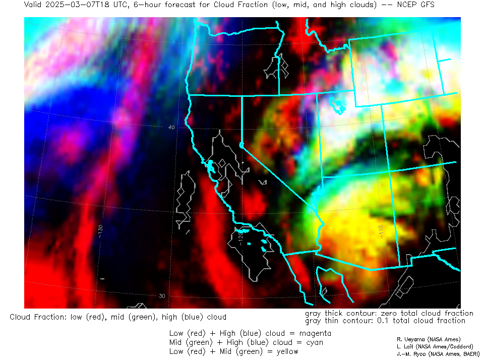 NCEP GFS Forecast Low-, Mid- and High-level Cloud Fraction