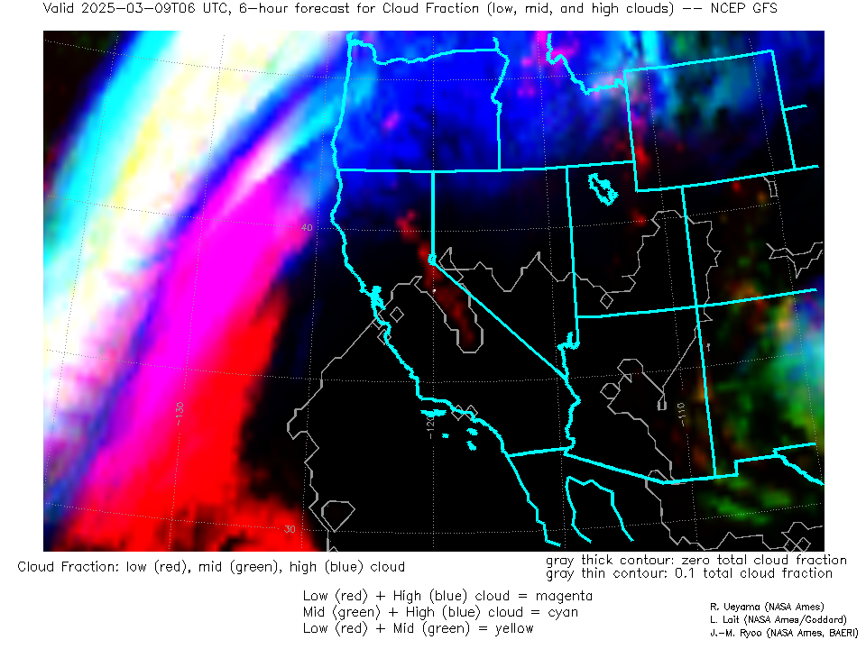 NCEP GFS Forecast Low-, Mid- and High-level Cloud Fraction
