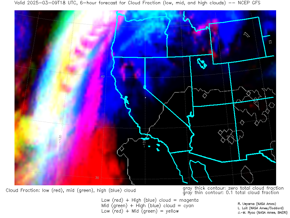 NCEP GFS Forecast Low-, Mid- and High-level Cloud Fraction