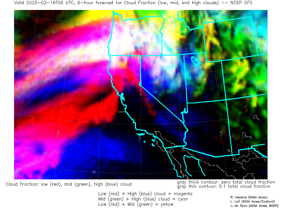 NCEP GFS Forecast Low-, Mid- and High-level Cloud Fraction