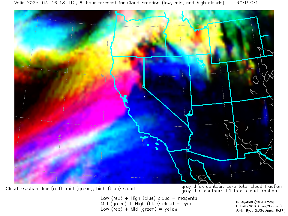 NCEP GFS Forecast Low-, Mid- and High-level Cloud Fraction