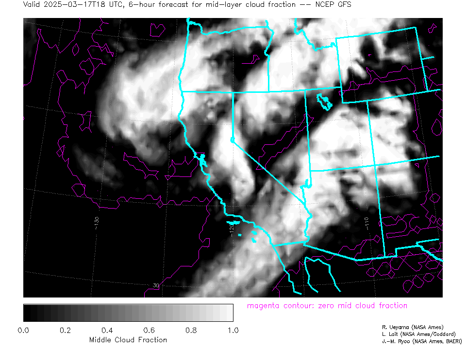 NCEP GFS Forecast Mid-level Cloud Fraction