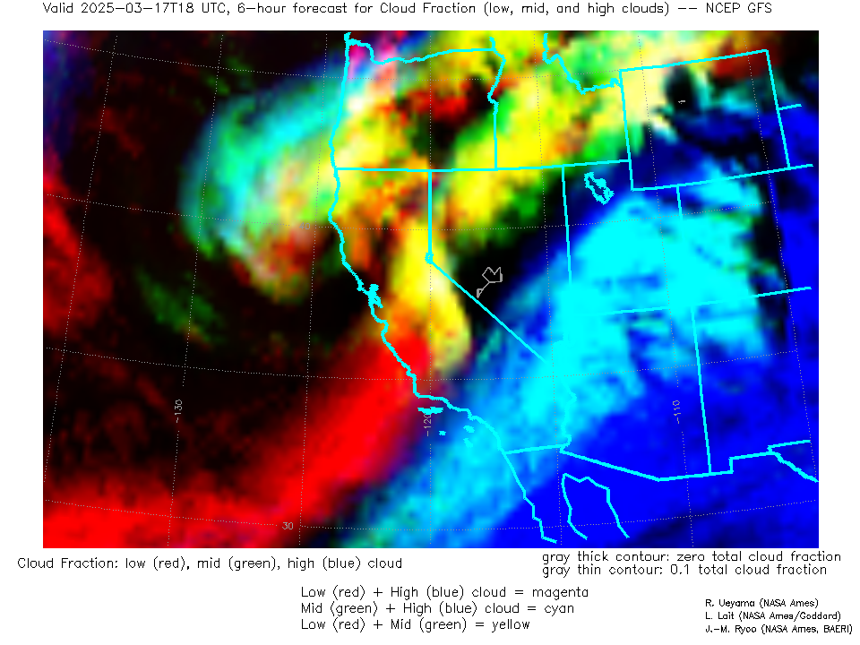NCEP GFS Forecast Low-, Mid- and High-level Cloud Fraction