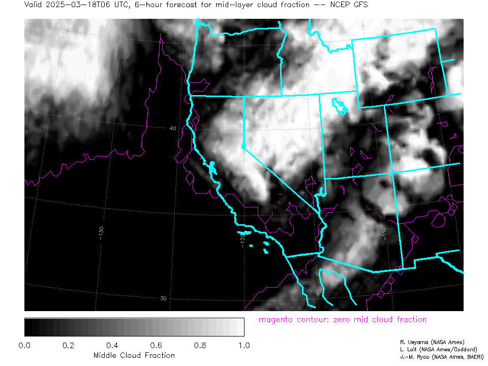 NCEP GFS Forecast Mid-level Cloud Fraction