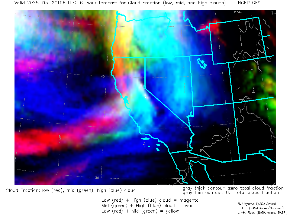 NCEP GFS Forecast Low-, Mid- and High-level Cloud Fraction