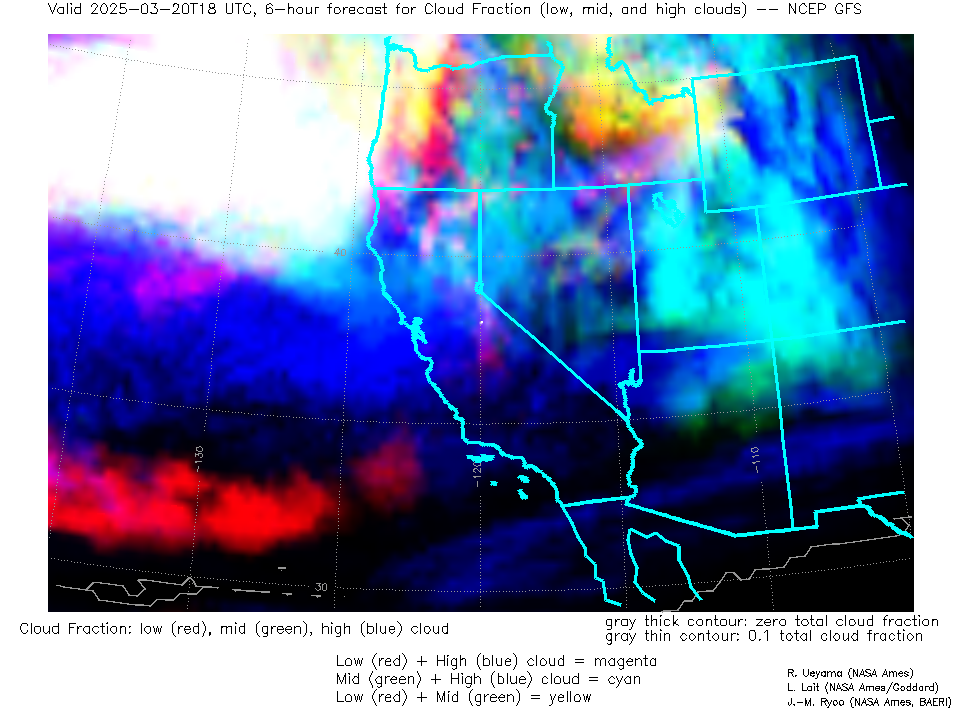 NCEP GFS Forecast Low-, Mid- and High-level Cloud Fraction