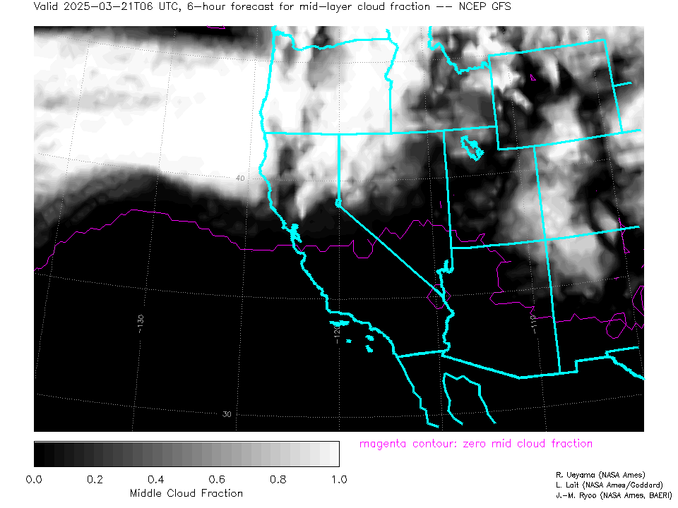 NCEP GFS Forecast Mid-level Cloud Fraction