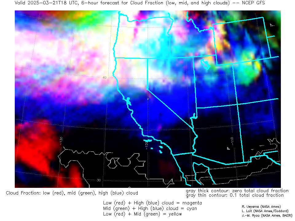 NCEP GFS Forecast Low-, Mid- and High-level Cloud Fraction