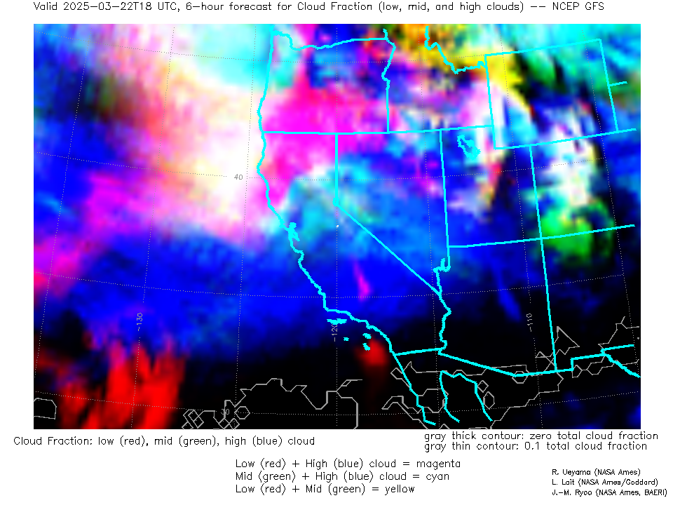 NCEP GFS Forecast Low-, Mid- and High-level Cloud Fraction