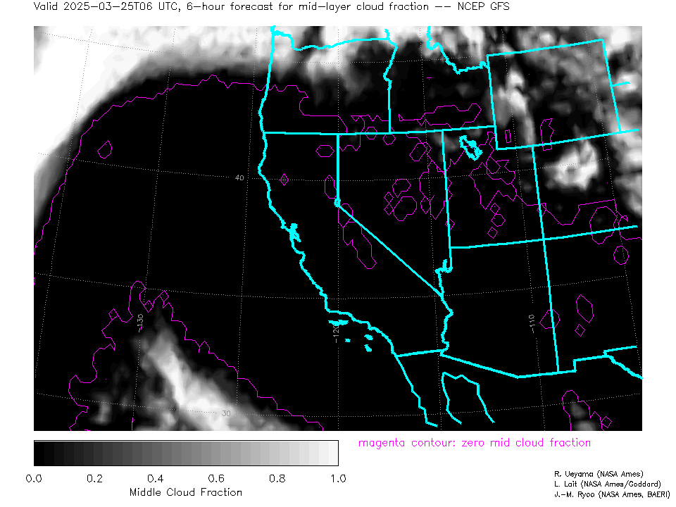 NCEP GFS Forecast Mid-level Cloud Fraction